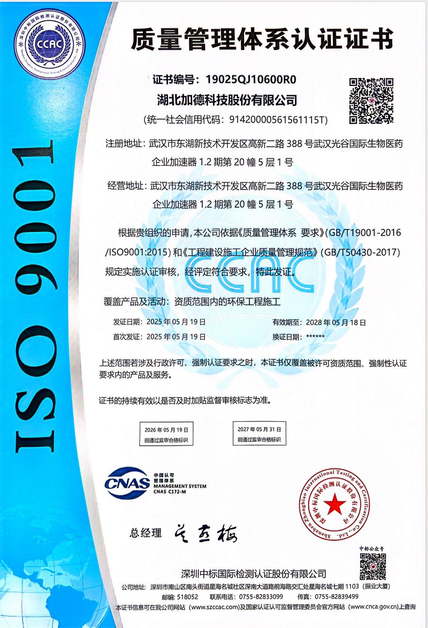 “武漢經濟技術開發區黃陵污水處廠二期擴建工程生物倍增@工藝包項目”認證證...