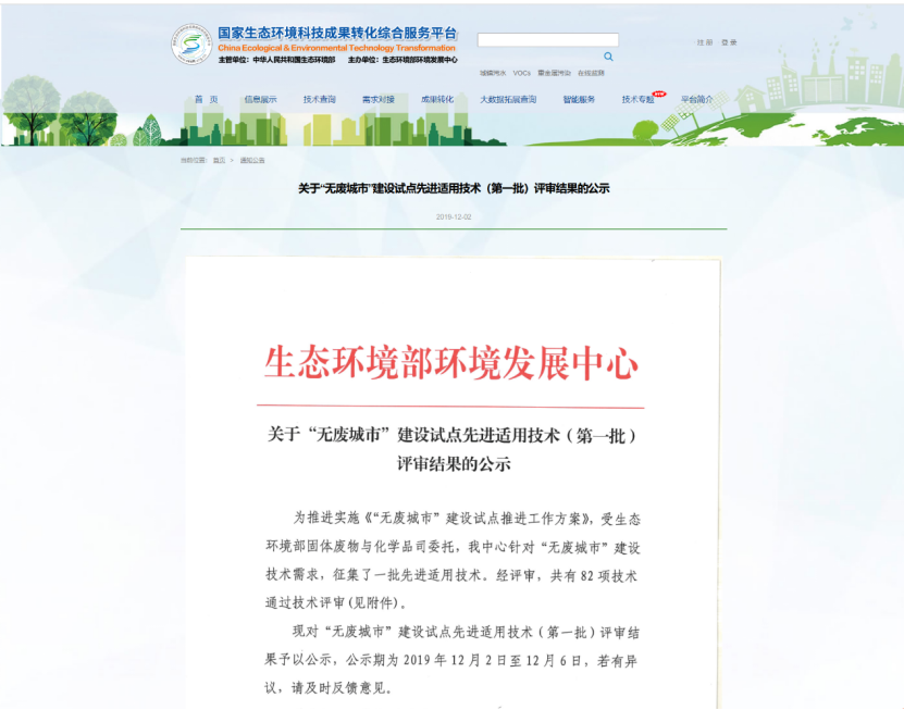 2019 年 1 2 月 2日,國家生態環境科技成果轉化綜合服務平臺發布了關于“無廢城市”建設試點先進適用技術(第一批)評審結果的公示,湖北加德科技股份有限公司研發的“污泥閃蒸干化耦合熱解氣化技術”成功入選。 開展 “無廢城市”建設試點是深入落實黨中央、國務院決策部署的具體行動...MORE →