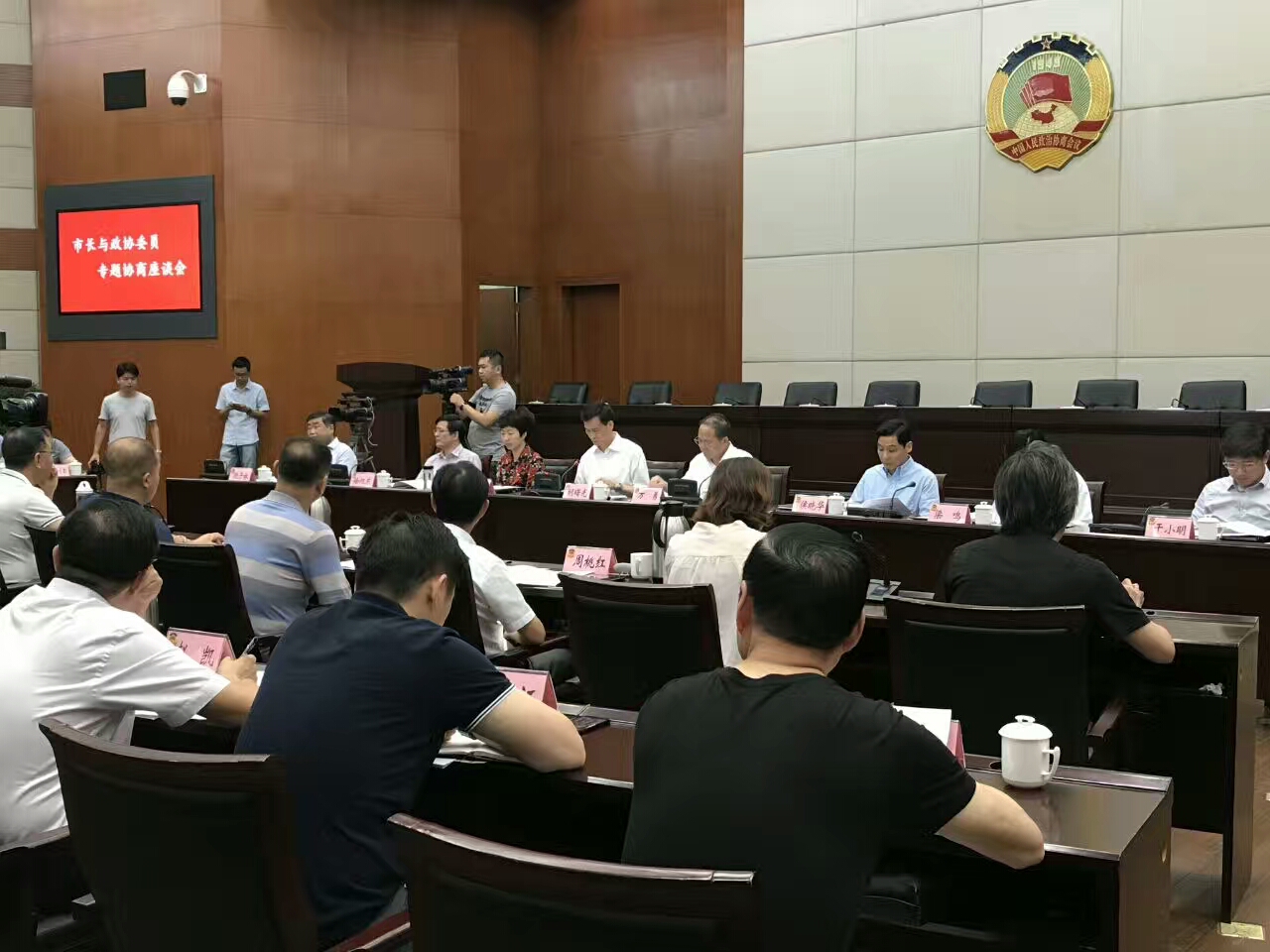 2017年7月19日上午,武漢市市長(zhǎng)萬(wàn)勇與政協(xié)委員代表在武漢市政協(xié)常委會(huì)會(huì)議室進(jìn)行專題協(xié)商座談會(huì),我司董事長(zhǎng)周桃紅應(yīng)邀參加會(huì)議。會(huì)議由武漢政協(xié)主席胡曙光主持,政協(xié)副主席、市政府招商、城建、水務(wù)等十七個(gè)部門負(fù)責(zé)人參加。
