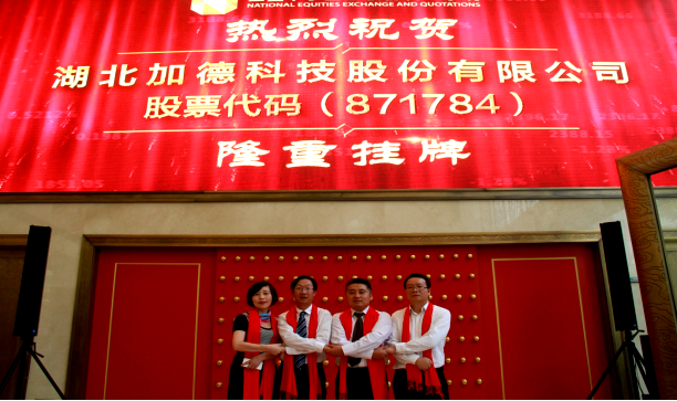 8月21日,伴隨著喜慶的鐘聲敲響,新三板掛牌公司湖北加德科技股份股份有限公司(證券簡(jiǎn)稱(chēng):加德科技,股票代碼:871784),在北京全國(guó)中小企業(yè)股份轉(zhuǎn)讓系統(tǒng)中心隆重舉行了敲鐘儀式,公司董事長(zhǎng)周桃紅攜公司高管和嘉賓共同見(jiàn)證這一重要的里程碑時(shí)刻,湖北電視臺(tái)做現(xiàn)場(chǎng)報(bào)道。當(dāng)天下午13點(diǎn)58分,周桃紅董事長(zhǎng)敲響開(kāi)市寶鐘。