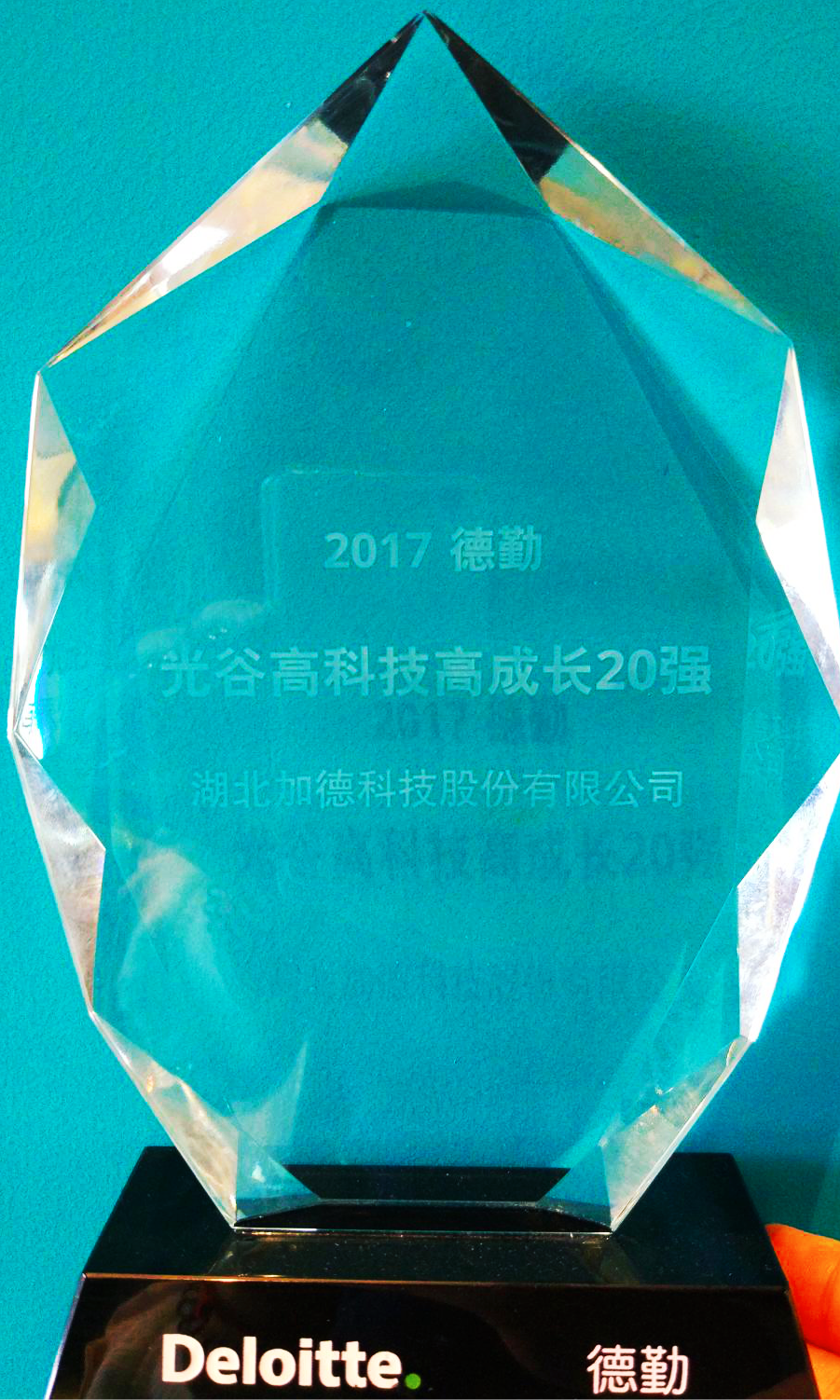 10月27日,由德勤與武漢東湖新技術開發區管理委員會共同主辦,以期表彰武漢光谷地區高速成長、持續創新的卓越企業的“2017年度德勤-光谷高科技高成長20強”(簡稱“光谷20強”)和“德勤-光谷明日之星”(簡稱“光谷明日之星”)評選結果揭曉。湖北加徳科技股份有限公司榮獲"2017年度德勤?光谷高科技高成長20強"榮譽。此次評選活動由德勤與武漢東湖高新技術開發區共同舉辦,在東湖開發區政務中心發布并頒獎,公司總經理張立民應邀出席頒獎典禮。