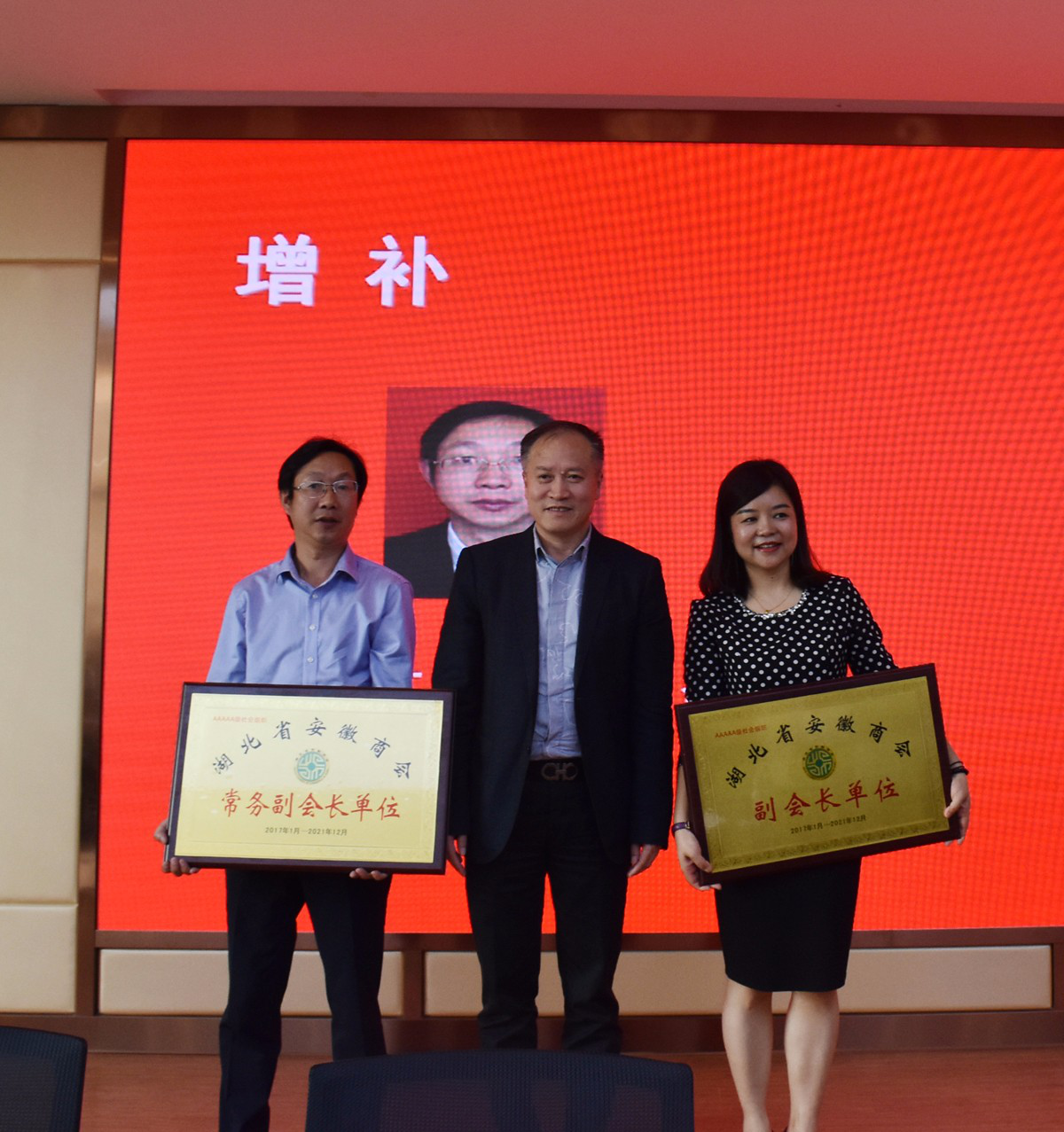 會議增補湖北加德科技股份有限公司董事長、黨支部書記周桃紅為商會常務副會長,湖北佳士成道路保潔有限公司總經理楊文為商會副會長。他們的加入,進一步加強了商會領導力量,充分表明了安徽商會人才輩出,興旺發達,展示了商會強大的吸引力和巨大的社會影響力。