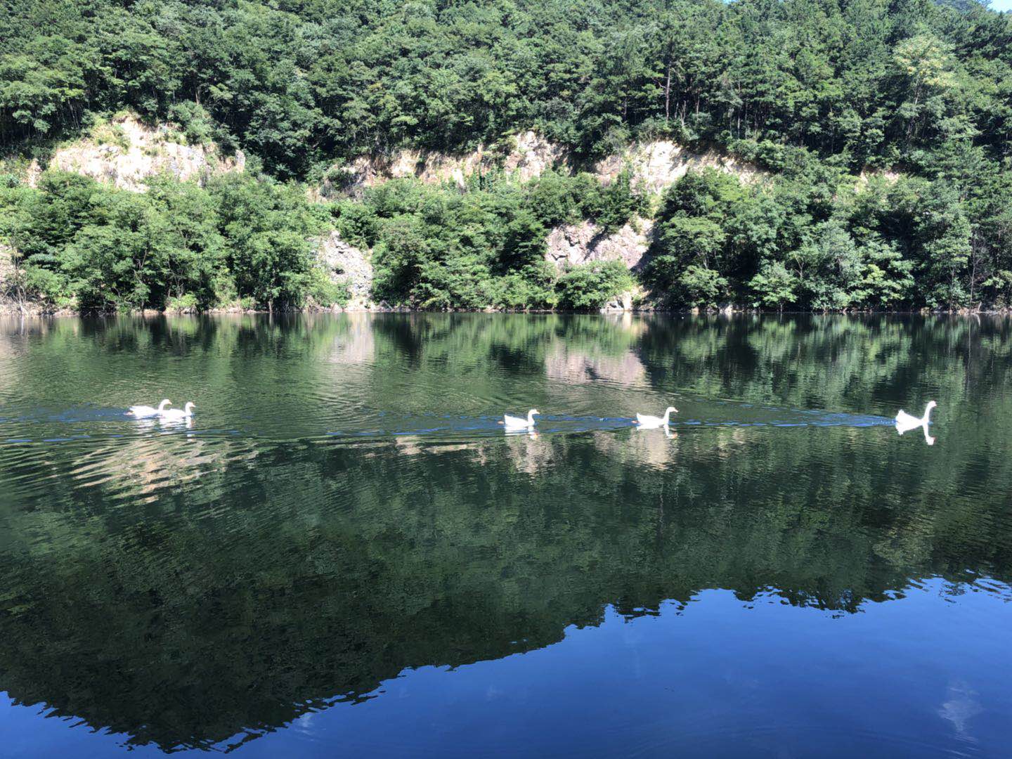 次日清晨,我們前往本次活動的第二站——金剛臺西河景區(qū)。在頭一天的晚上,通過導(dǎo)游的介紹,西河的湖水、瀑布、天鵝已經(jīng)令人神往,但是仍然不及親身走在湖邊的綠道上,所感受到的風(fēng)景如畫。在走過清涼、曲折的觀光棧道后,我們還盡情地游玩了空中漫步、滑索、攀巖、彩虹橋等多個拓展項目,相當(dāng)于對大家的身體、精神狀況進行了一個全面考核,這些項目提醒我們在緊張工作中也要不忘保持良好的身體素質(zhì)。