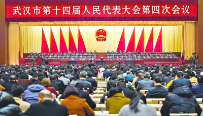 5日上午,武漢市第十四屆人民代表大會第四次會議開幕,大會主席團常務主席、大會執行主席馬國強主持大會。市長周先旺向大會作政府工作報告。報告分三部分:2018年工作回顧、2019年重點工作任務、建設人民滿意的服務型政府。