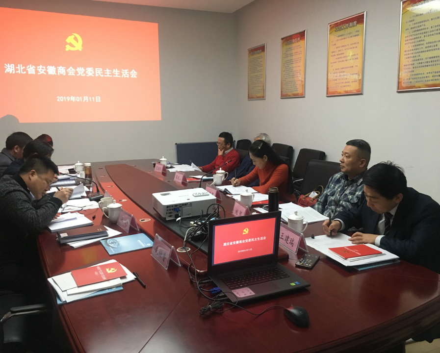 2019年1月11日,湖北省安徽商會黨委民主生活會在湖北加德科技股份有限公司會議室成功召開。黨委成員王志菁、范德明、姚 鄒、豐書和、汪武兵、朱仕香、周桃紅、盧滿寶、王建瑞、李莉出席會議;許鵬因事請假,并提供了書面發言材料;黨委書記王志菁主持會議并報告了一年來商會黨建工作情況。