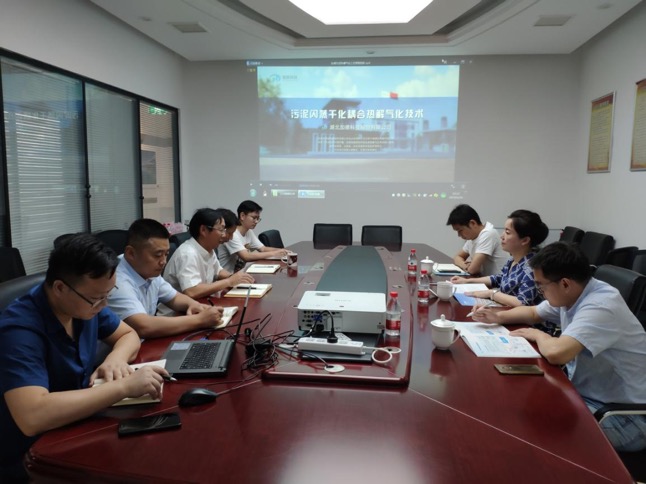 湖北加德科技股份有限公司董事長周桃紅首先對中信工程公司領導及中南市政院專家的到來表示熱烈歡迎并帶領參觀了公司技術及產品展廳,副總經理袁鵬飛向一行領導和專家介紹了公司創新的污泥閃蒸干化耦合熱解氣化核心技術研發及項目應用情況,該項目技術通過了環保部科技發展中心的技術評估。會上雙方就污泥處理處置產業情況、工藝技術種類、工藝技術問題和難點、經濟技術指標及相應實際案例進行了充分討論交流。