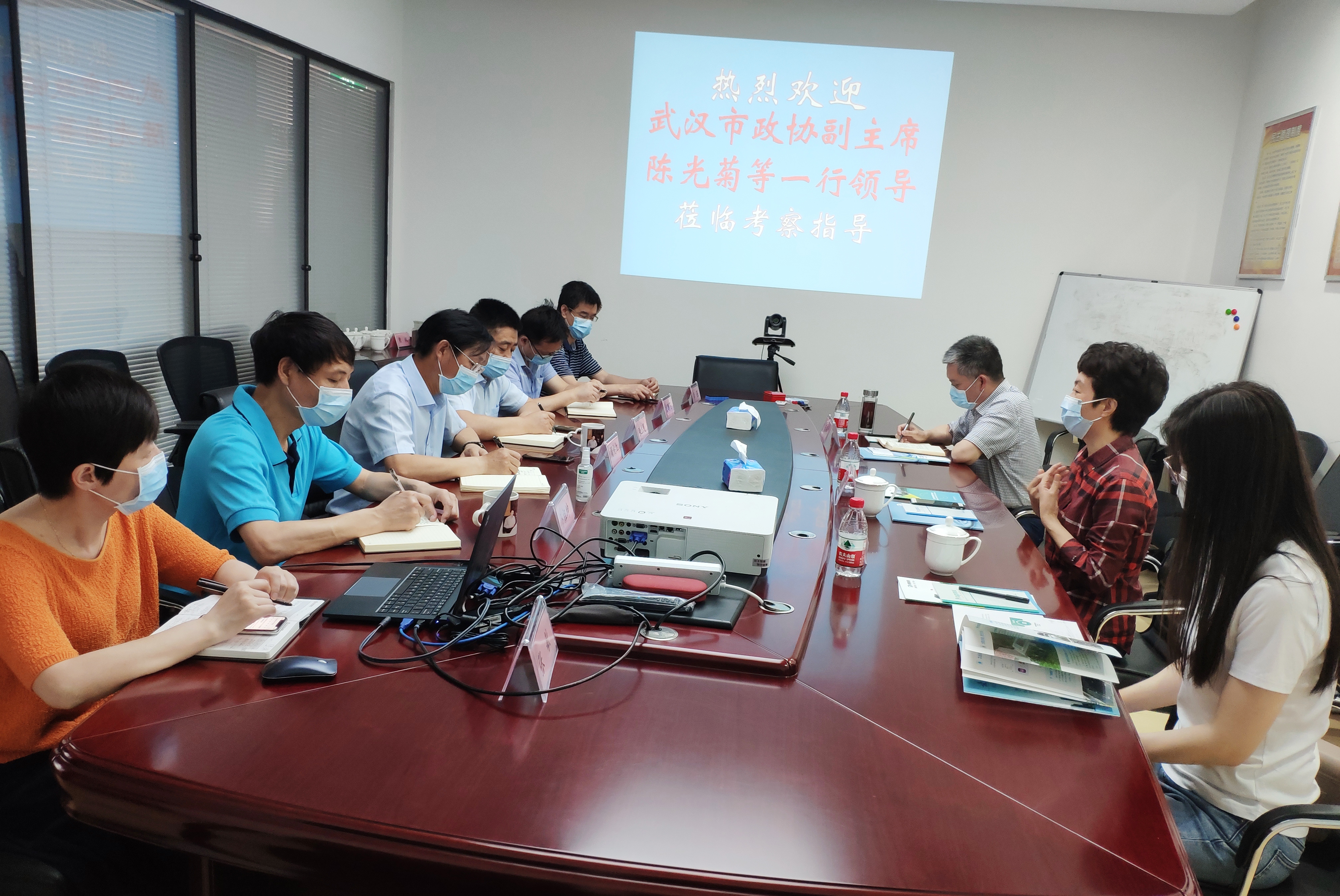 2020年6月4日上午,武漢市政協副主席陳光菊、武漢市教科衛體委員會專職副主任朱務本、工作處處長黃莉莉等領導一行蒞臨市政協委員企業湖北加德科技股份有限公司,調研企業發展情況。武漢市政協委員、湖北加德科技股份有限公司董事長周桃紅帶領公司高管層熱情接待了陳副主席等一行領導。