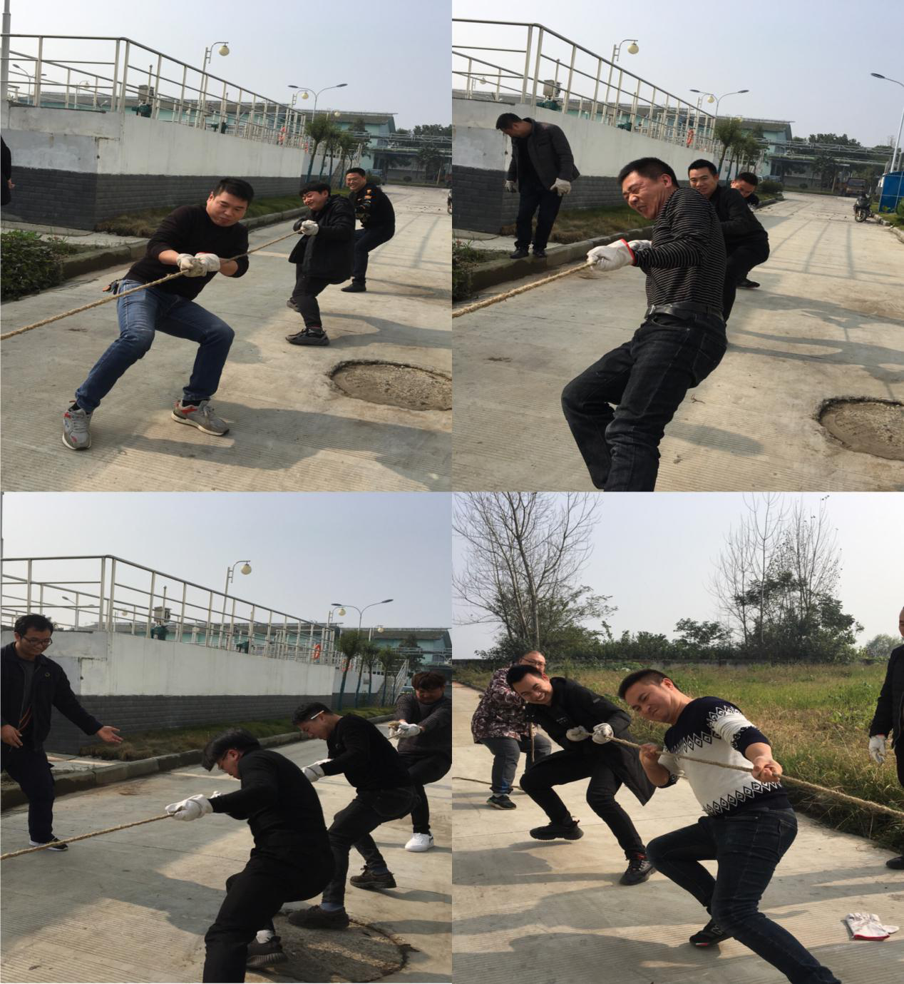 放下工作中的負擔把自己交給團隊身邊的隊友就是平時朝夕相處的同事在充滿趣味性的團隊賽中更能體會信任、包容與鼓勵的重要性,11:00拔河比賽開始了,分為4組,雙方握緊繩子,他們一個個腳蹬地,身體向后傾,拼命向自己的方向拽繩子。繩中間的紅綢帶一會兒移向猛虎隊,一會兒又移向雄鷹隊,互不相讓。隊員們,也齊聲吶喊,不停地為自己隊擂鼓助威。此時,我方的隊員們一個個都紅了眼,有的人臉憋得通紅,有的人齜著牙、咧著嘴在叫勁,還有的人雙手緊握繩子鉚足了勁向自己方向拉。
