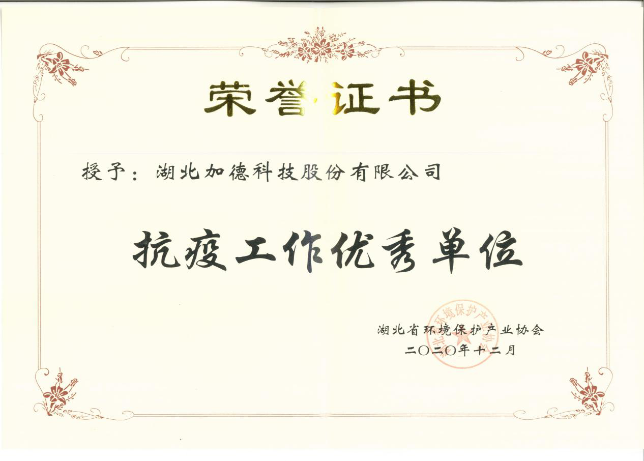 自新冠肺炎防控工作開展以來,我司積極投身抗擊新冠肺炎疫情的工作中,在督促企業(yè)員工及家屬做好個人防控的同時,與武漢人民、湖北人民同舟共濟(jì)、守望相助,為打贏武漢保衛(wèi)戰(zhàn)、湖北保衛(wèi)戰(zhàn)做出了積極貢獻(xiàn)。現(xiàn)為表彰我司在疫情防控工作中做出的貢獻(xiàn),湖北省環(huán)境產(chǎn)業(yè)保護(hù)協(xié)會授予我司“抗疫工作優(yōu)秀單位”稱號,湖北省安徽商會授予我司“先進(jìn)基層黨組織”稱號。