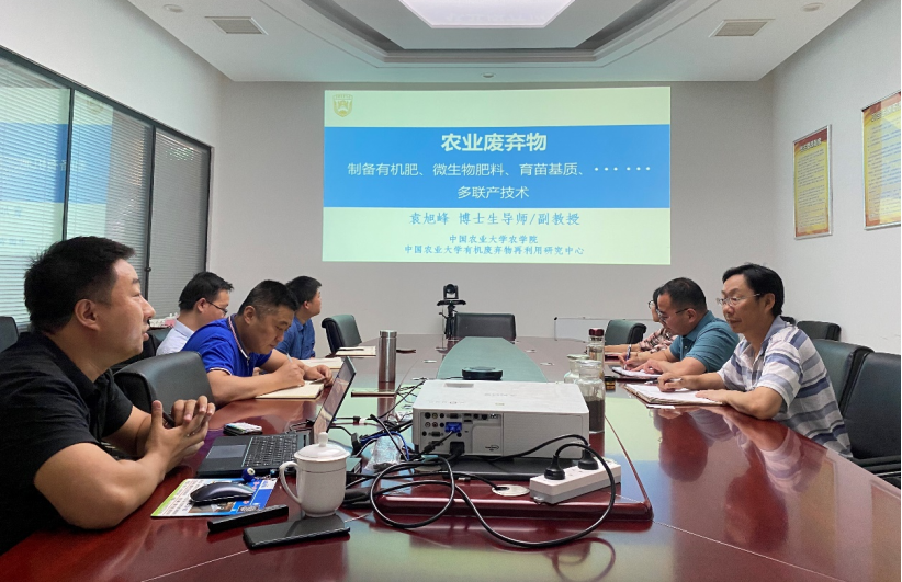 交流期間,袁教授深入介紹了農業廢棄物制備有機肥、微生物肥料、育苗基質等的多聯產技術、生產應用案例、產品優勢、市場前景等,針對我司特別關注的農村畜禽糞污、秸稈等制備有機肥和育苗基質片的技術,袁教授分析了其在項目建設過程中的關鍵點、難點,提出了寶貴的建議和意見,這對于公司今后開展農業環保領域業務具有重要的指導意義。
