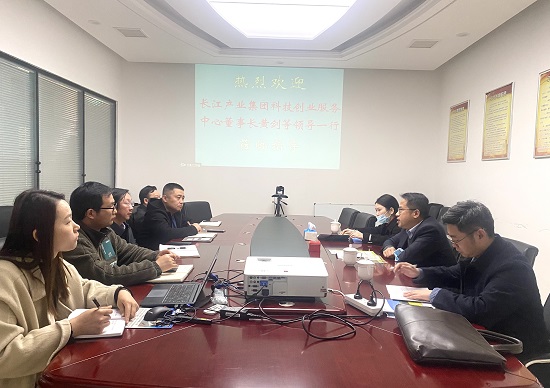 會上,加德科技董事長周桃紅首先對長江產業集團科技創業服務中心董事長黃劍一行的到來表示熱烈歡迎,就加德科技的主營板塊、創新技術及成果和后期發展戰略等作了詳細介紹,并與黃劍董事長進行深入的交流溝通。