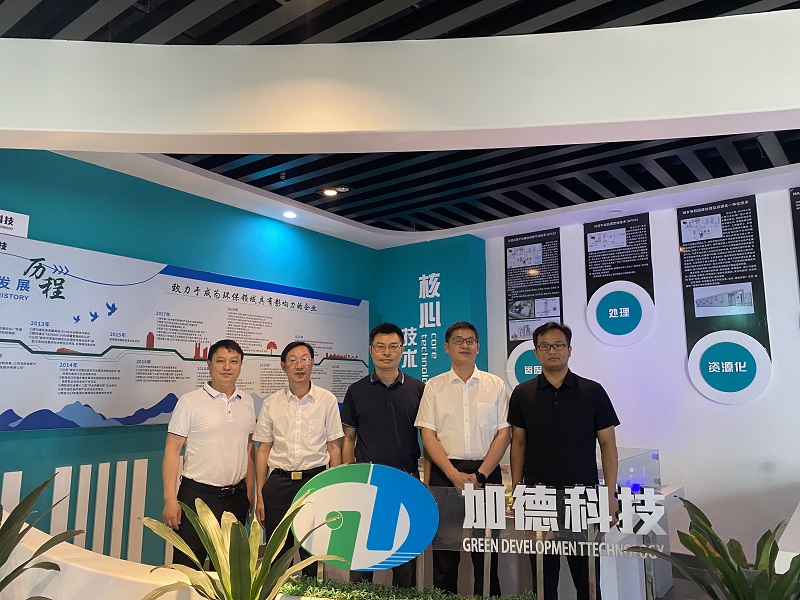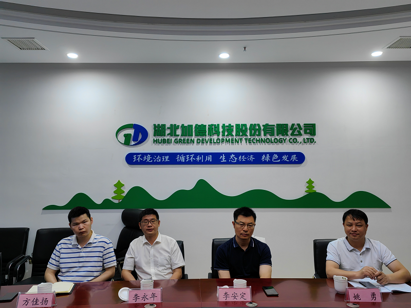 2023年6月8日上午,生態環境部發展中心產業室主任李安定、襄陽市環境局副局長李永年、襄陽市環境局輻射站副站長姚勇一行蒞臨加德科技調研考察。加德科技公司董事長周桃紅、總工程師任少輝、副總工程師陳少龍及主任工程師余橋熱情接待,并舉行座談會議,針對污泥及有機固廢處理及資源化利用的相關技術進行深入交流。