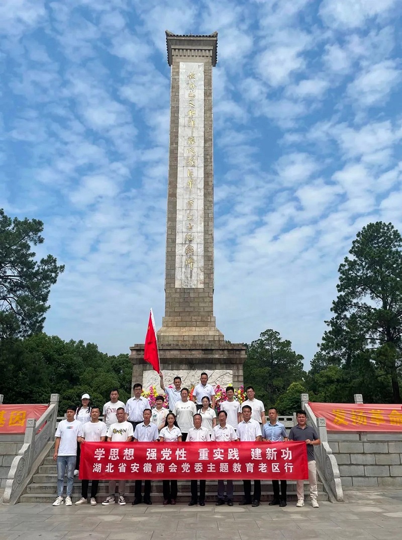 為迎接建黨102周年,深入學習貫徹黨的二十大,結合習近平新時代中國特色社會主義思想主題教育。2023年6月21日,湖北省安徽商會黨委組織黨委委員、所屬支部黨員、入黨積極分子,企業家代表一行20人,赴黃岡麻城革命老區,開展“學思想、強黨性、重實踐、建新功”主題教育活動,傳播黨的思想,深入企業調研,不斷提高企業家發展經濟,聚集主業的能力和信心。
